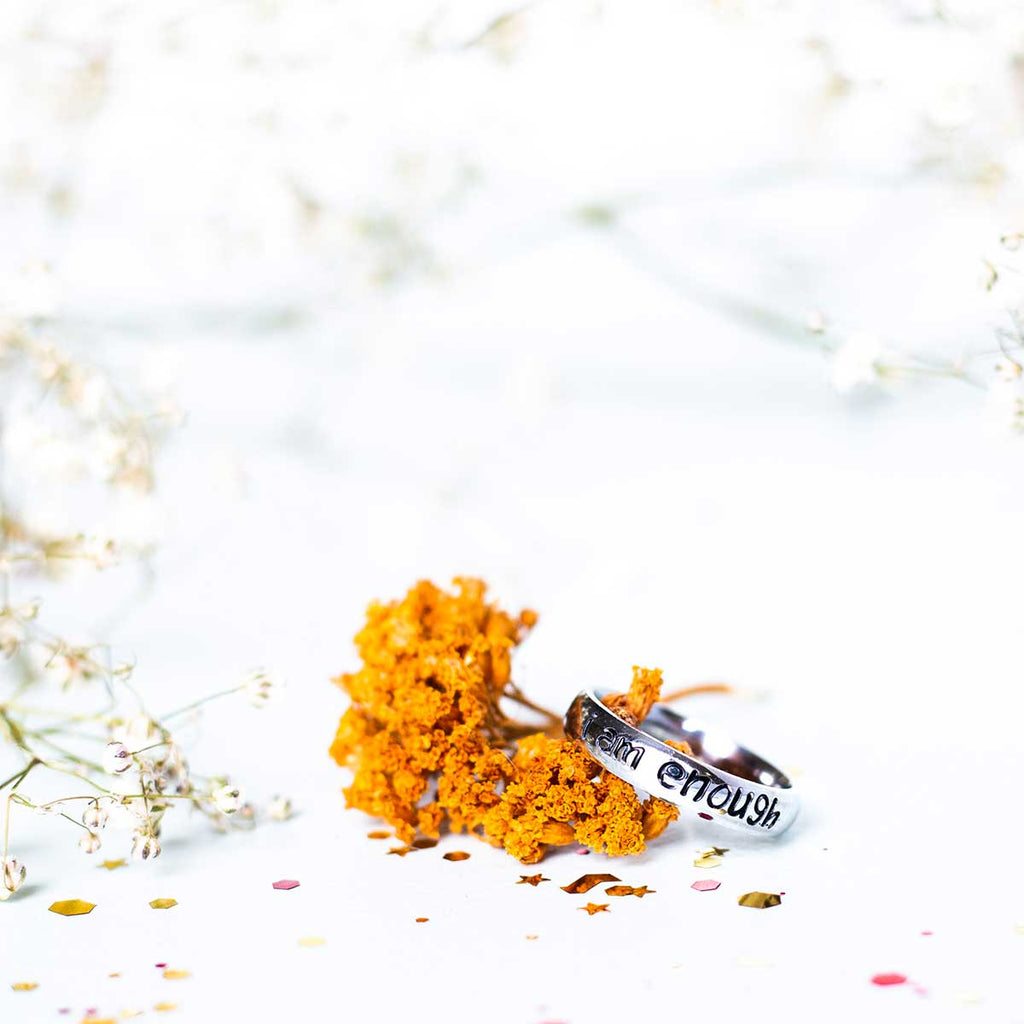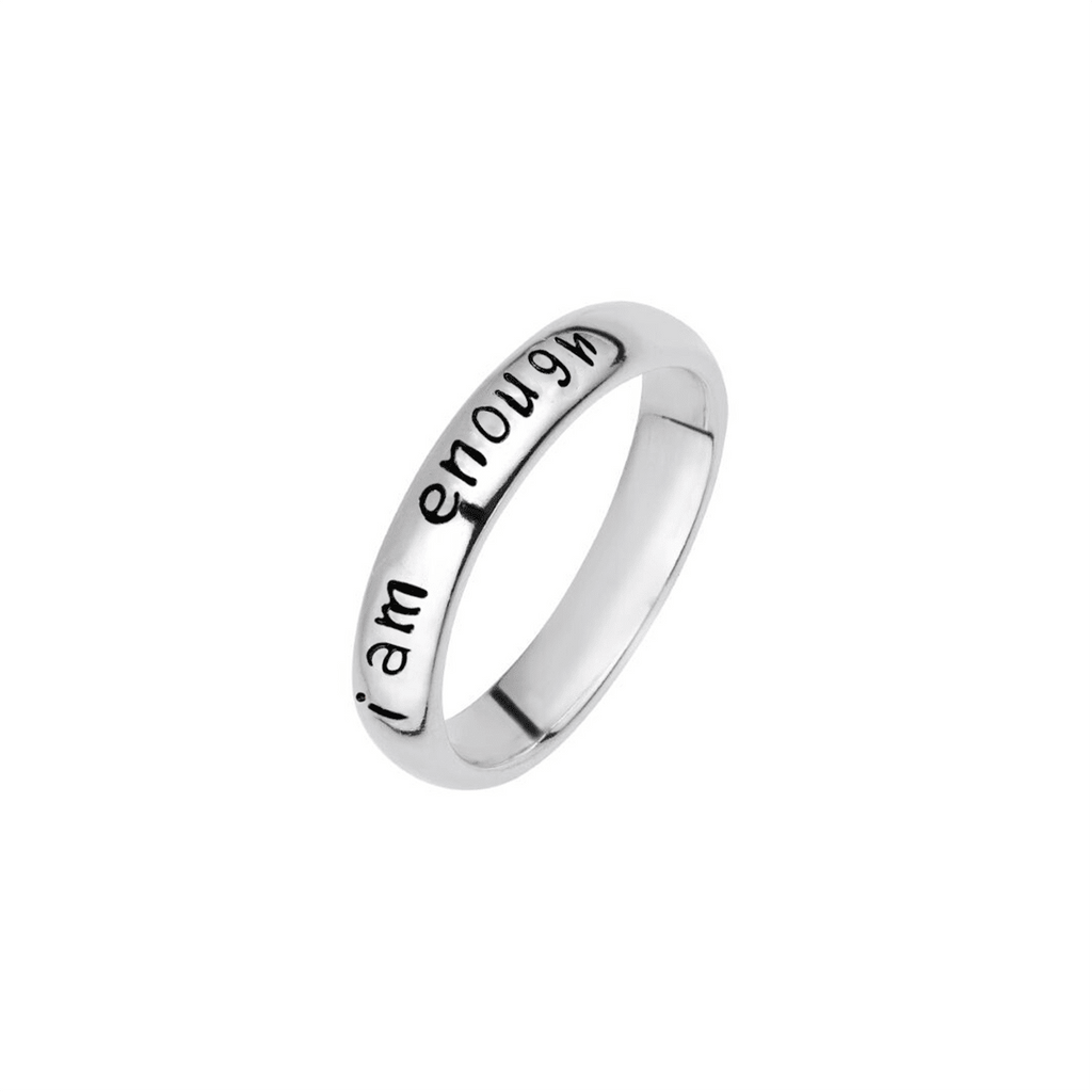 I bought this ring after a ruff break up. It’s solid and sturdy and perfect. I am enough should be strong. Thank you for this important piece of my recovery and reminder