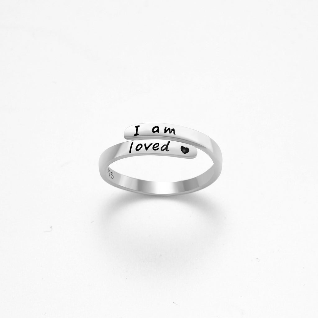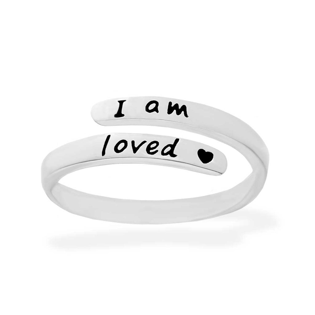 Our I Am Loved Thin Wrap Sterling Silver Ring is an open banded ring, adjustable to any finger. It's the perfect gift for friends and loved ones if you don't know their ring size.