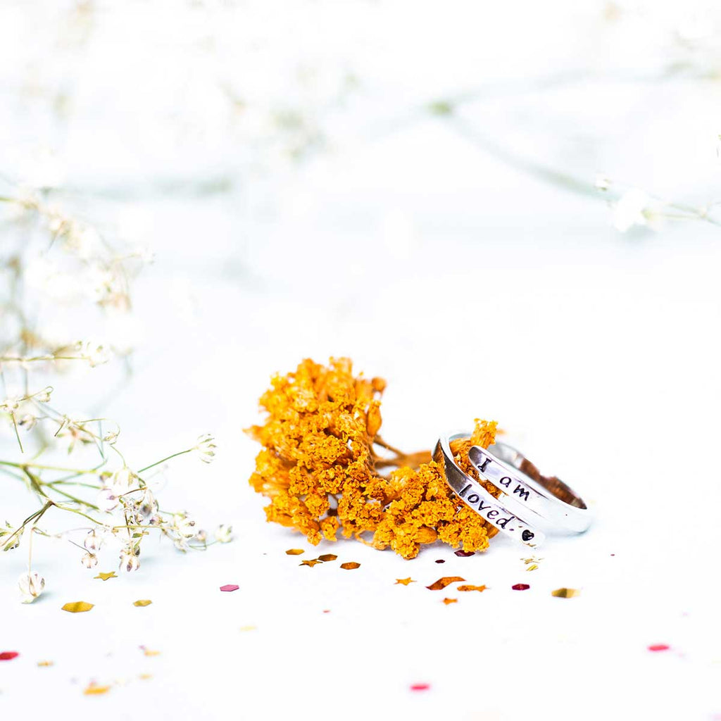 Our ring is meant to be used as a little gesture for those that truly need it. With the "I Am Loved" ring on our hand, it can be used as a daily reminder to keep striving for your contentment. We truly believe that little reminders throughout your day are exactly what you might need.