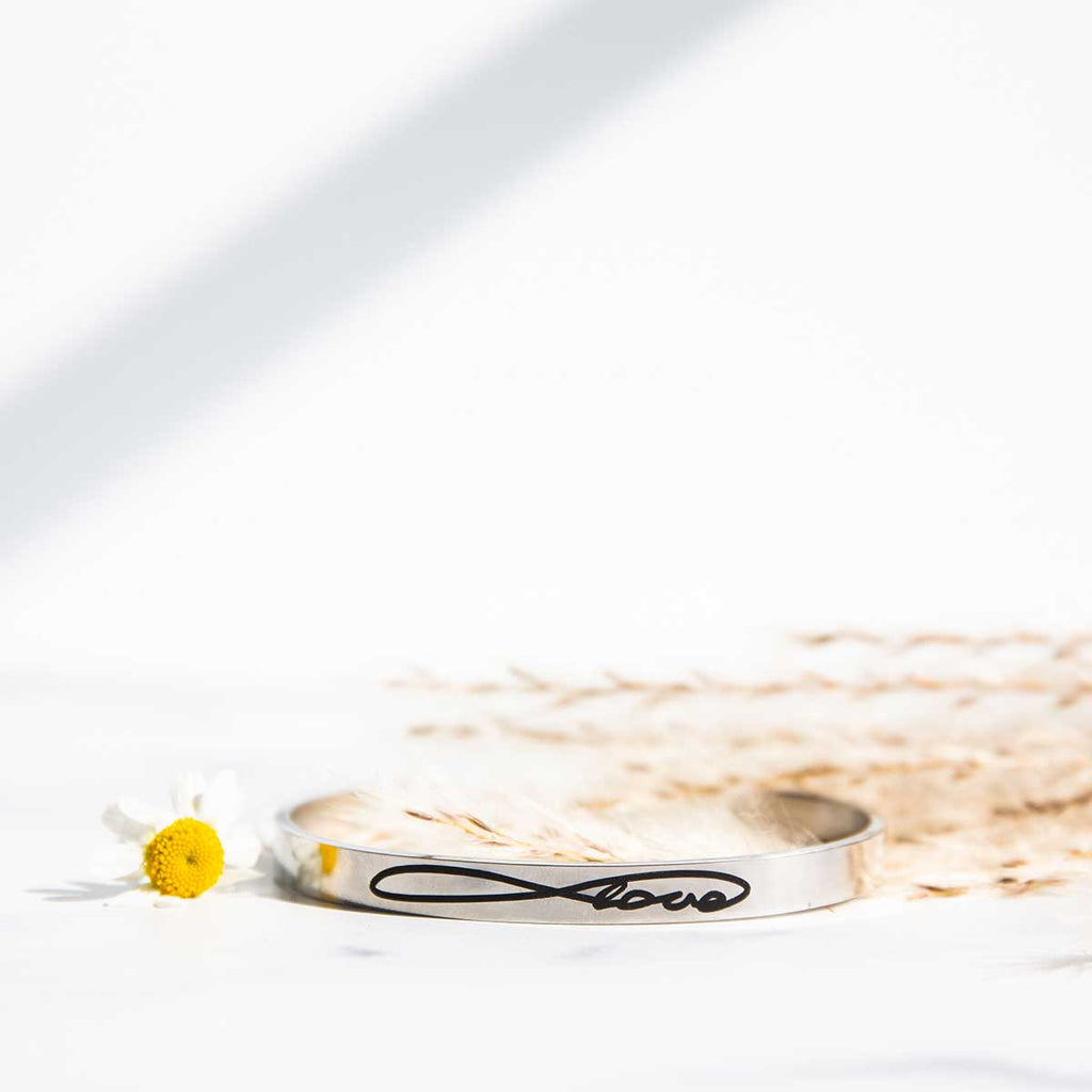 The purpose behind our Infinity Love Inspirational Cuff Bracelet is to spread awareness, increase self-confidence, and reassure us on a regular basis that we are enough.