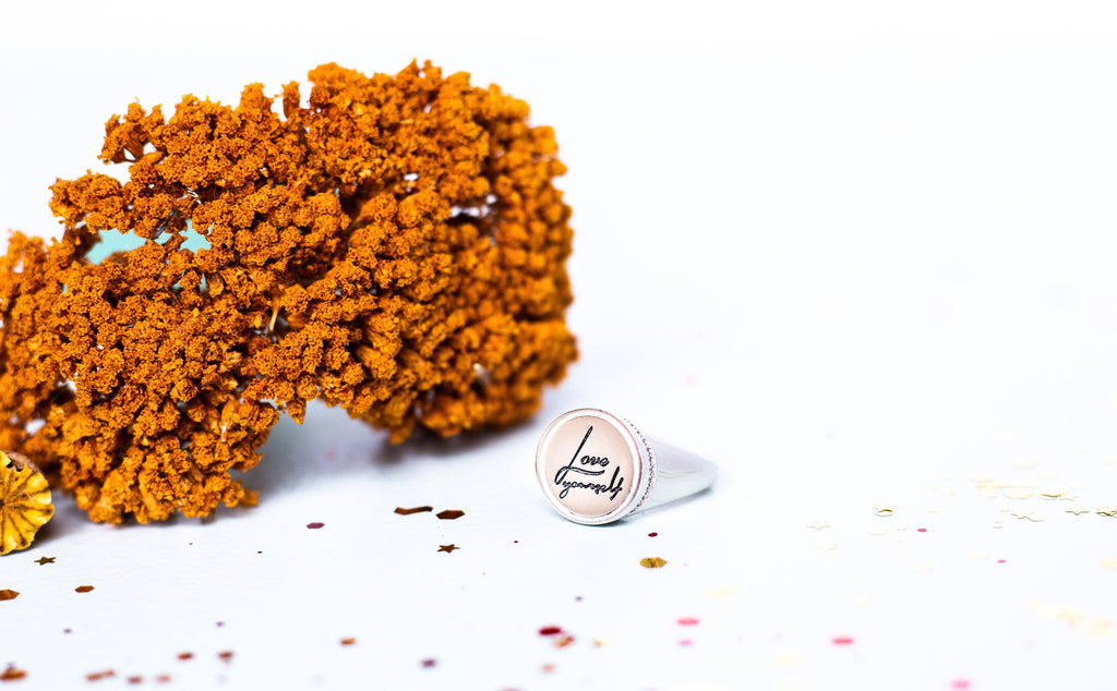 Our Love Yourself Sterling Silver Signet Ring is a new custom designed ring provides the perfect reminder to take a second and give some love to yourself.